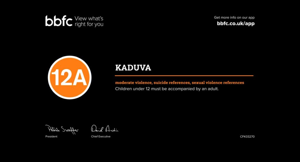 KADUVA BBFC 12A CERTIFICATE