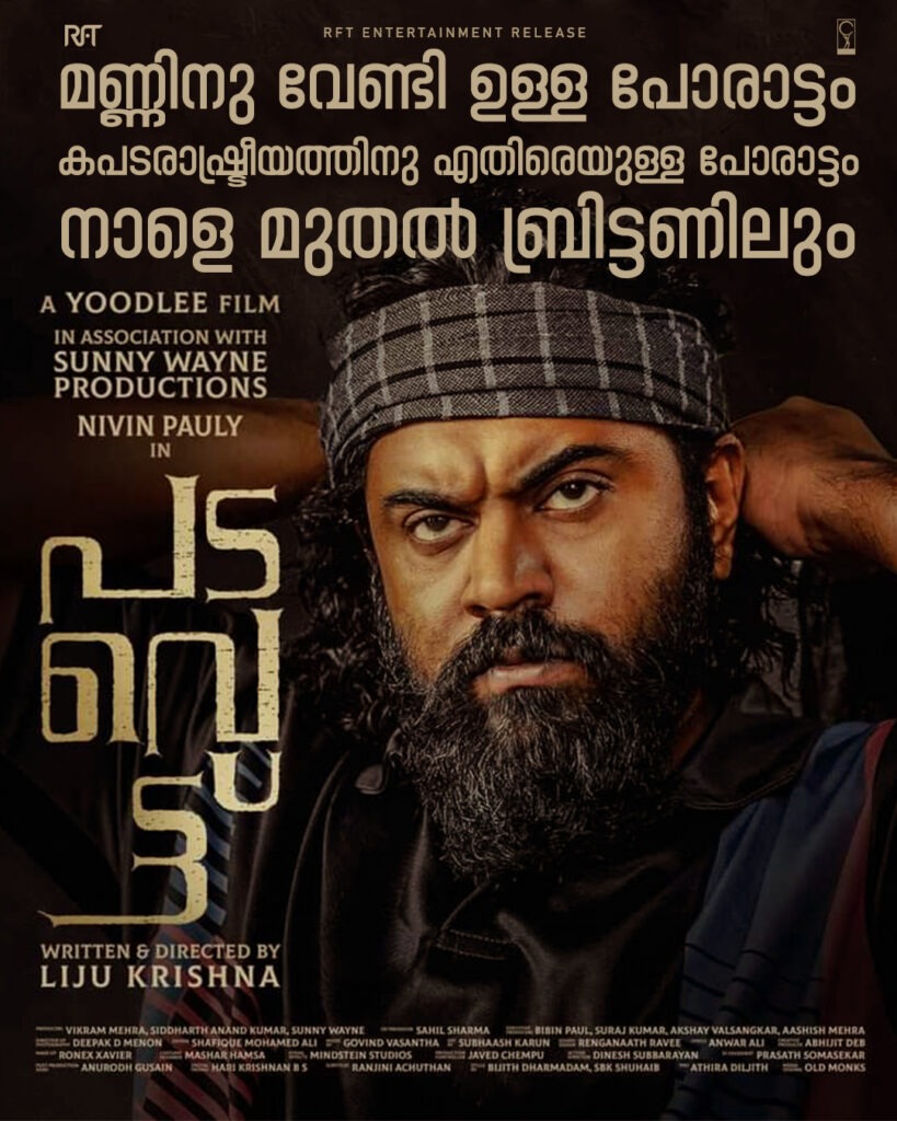LONDON: Nivin Pauly starred Liju Krishna movie PADAVETTU is released in Cinemas across UK. The movie got in depth appreciations back in India and releasing now in Cinemas UK.