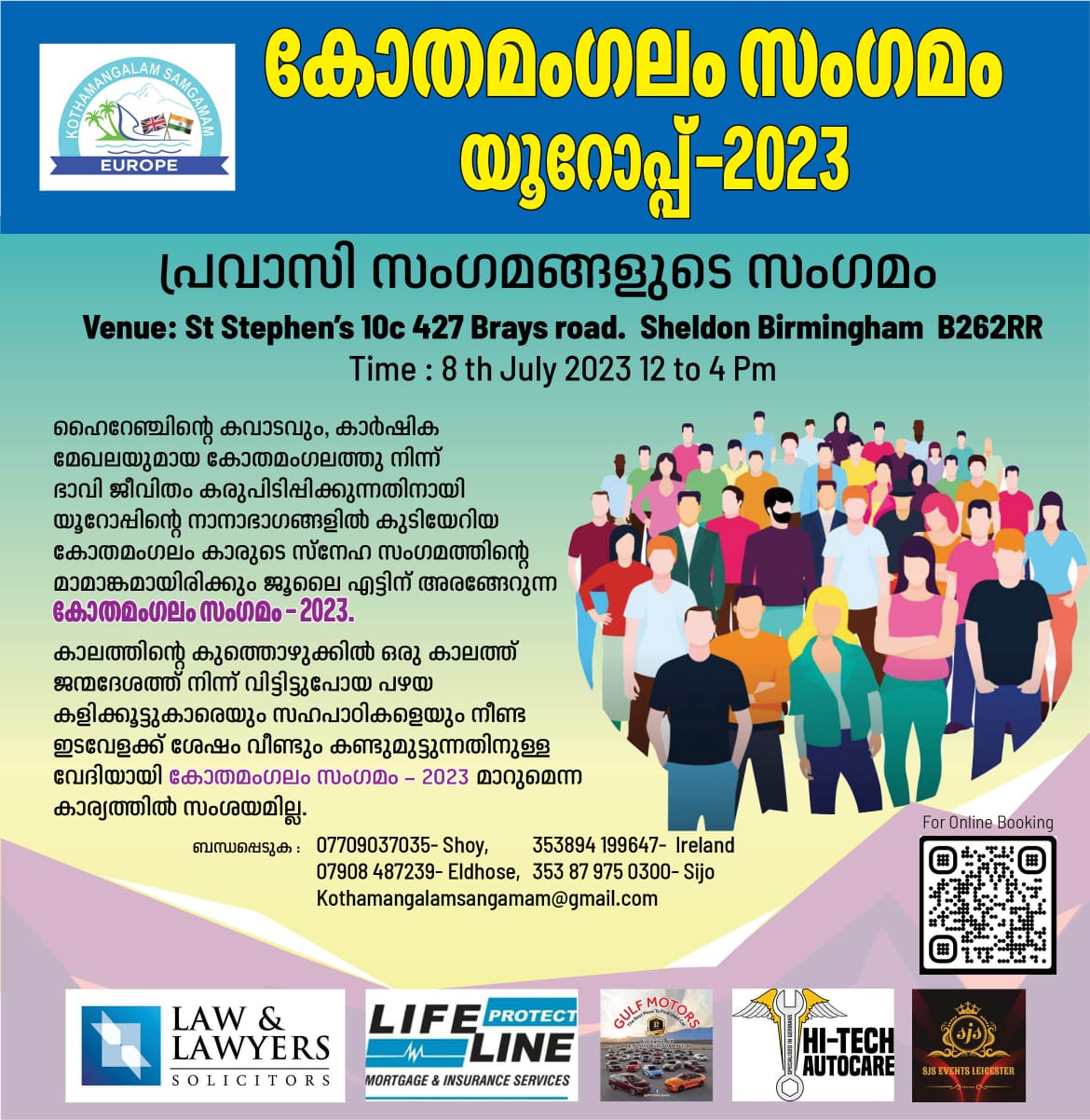 15-04-2023 | WHISTON TOWN HALL, L35 3QX FOR QUERIES: Joymon – 07828 614976Jinoy Madan- 07985 118737 Anil